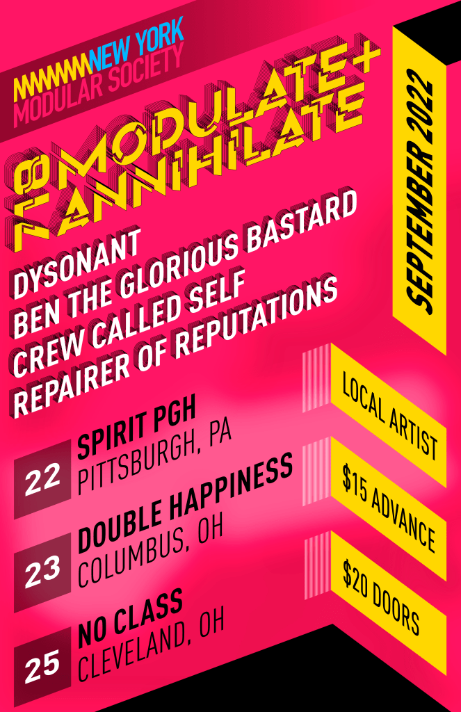 I’m excited to announce that I will be taking part in a mini tour this fall, with my friends Dysonant, Ben The Glorious Bastard, and Crew Called Self. We’re playing Pittsburgh, Columbus and Cleveland (more info below). This is my first tour since 2016. Parenthood and Ph.D. duties made it very difficult until recently. I hope to see folks out there, I will be debuting a lot of new material.